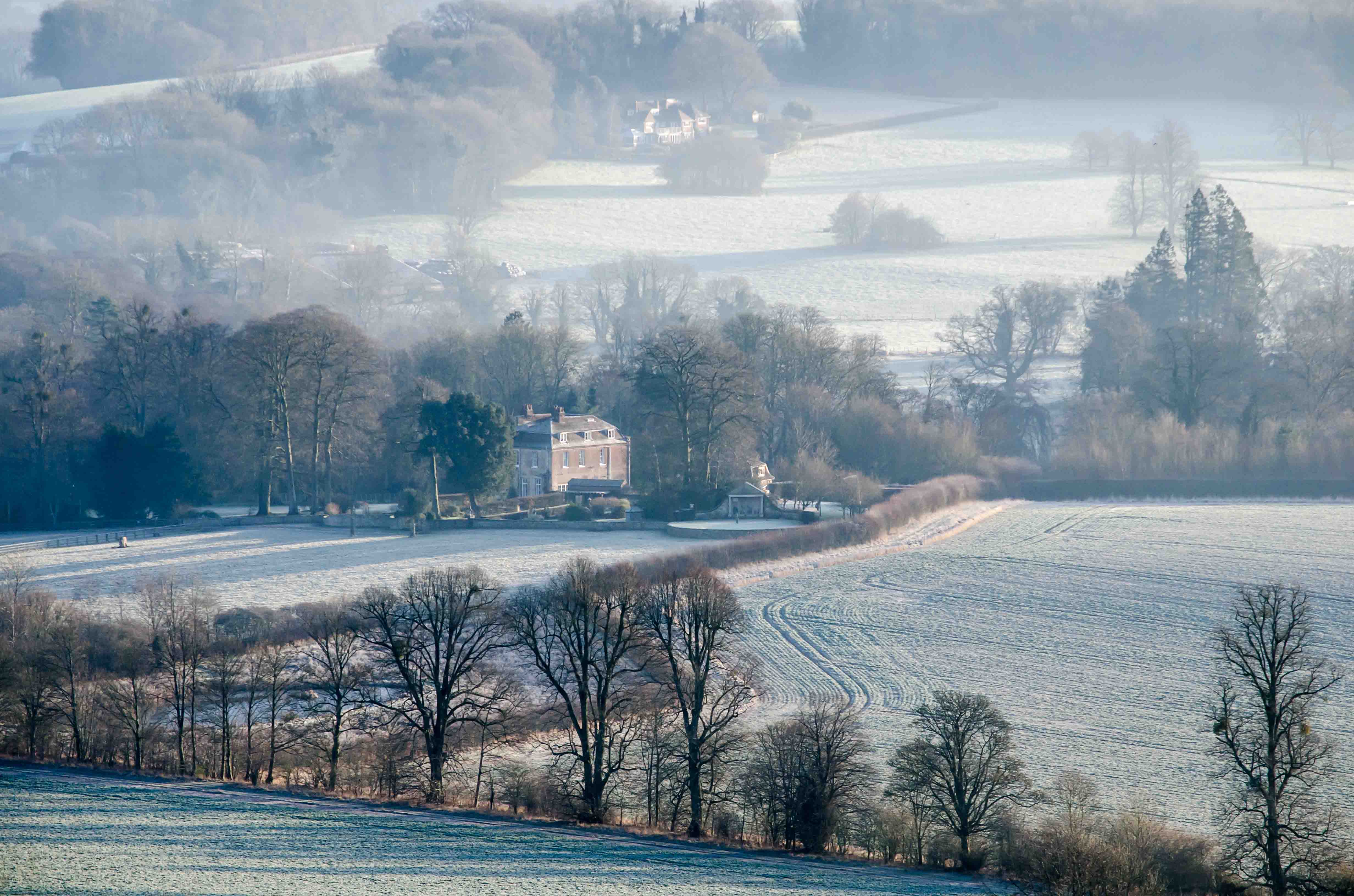 Picture caption ‘Abbey House, Warnford, among winter fields’ by nwcopywriting