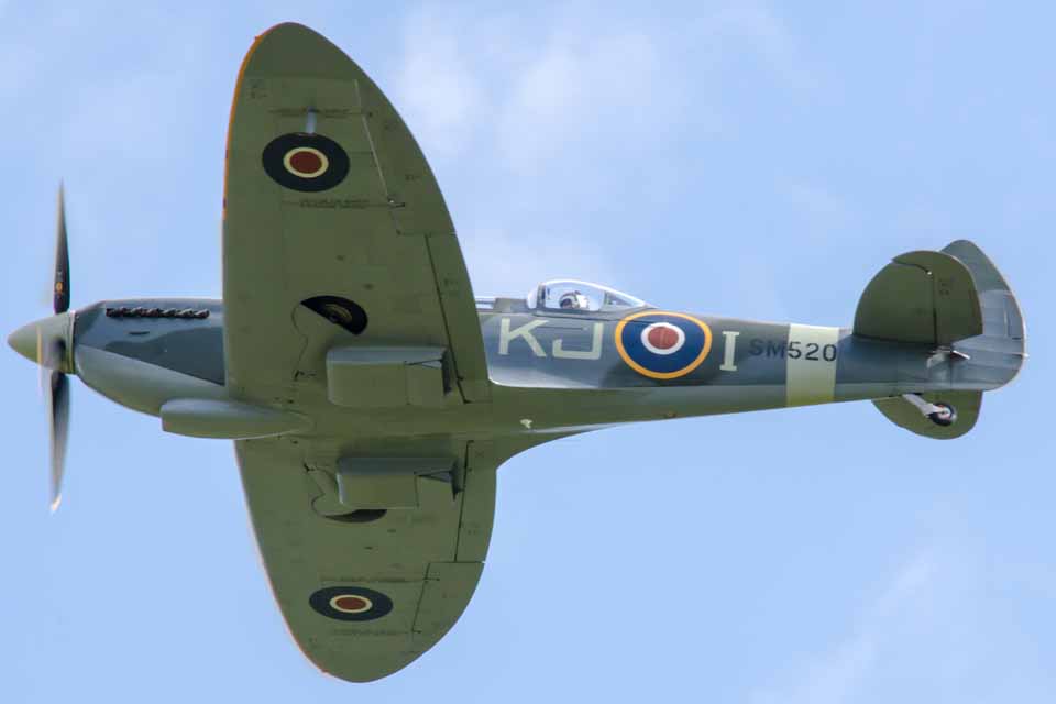 Spitfire KJI SM520 (MK IX) flying over the former Naval Airfield HMS Daedalus Found rotting in a scrapheap in Cape Town, South Africa back in the 70’s, restored and converted into a 2 seater