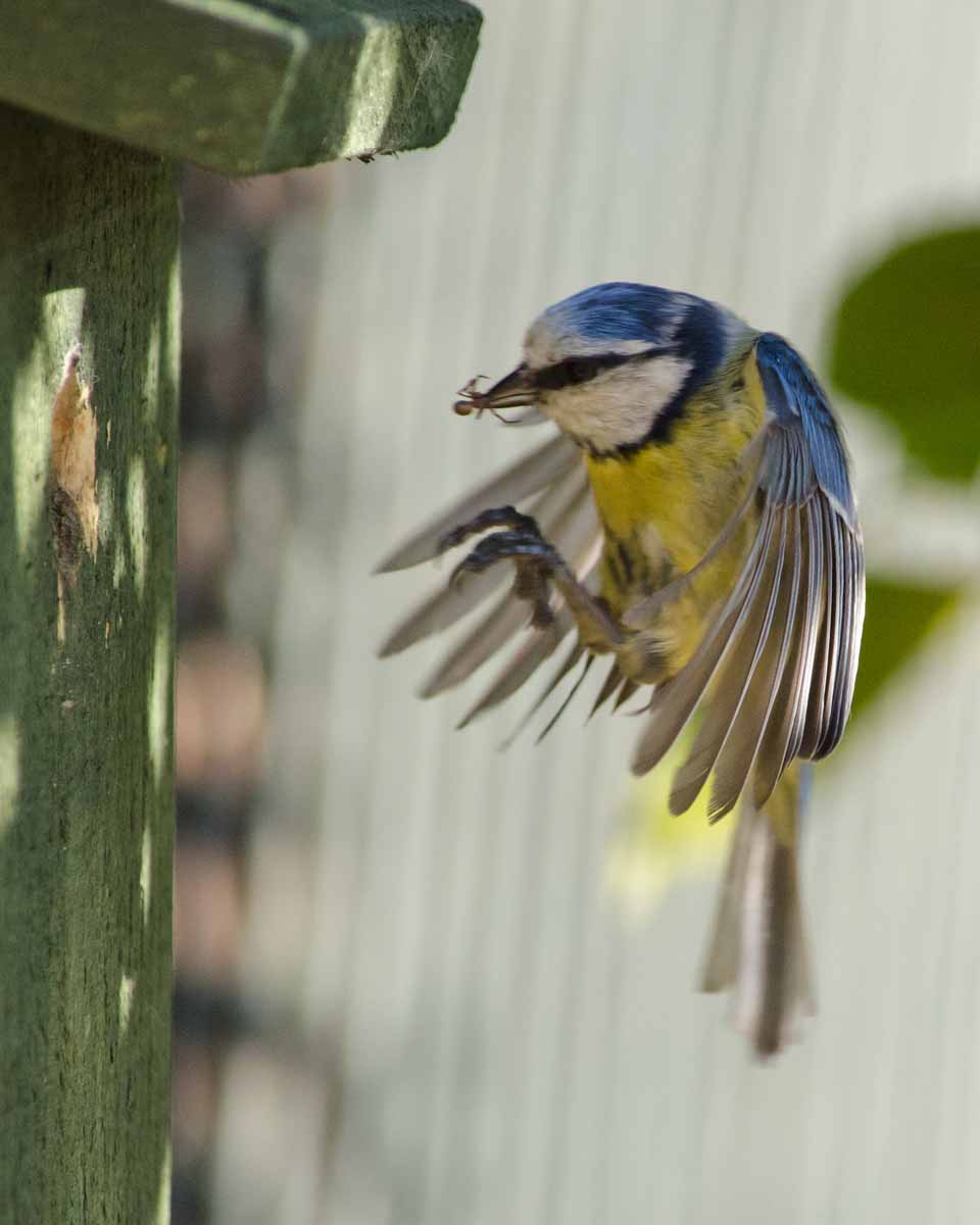 Haggard looking Blue Tit bringing food back to its brood. Some people would be calling International Rescue if they see a spider that ‘big’ in their house!
