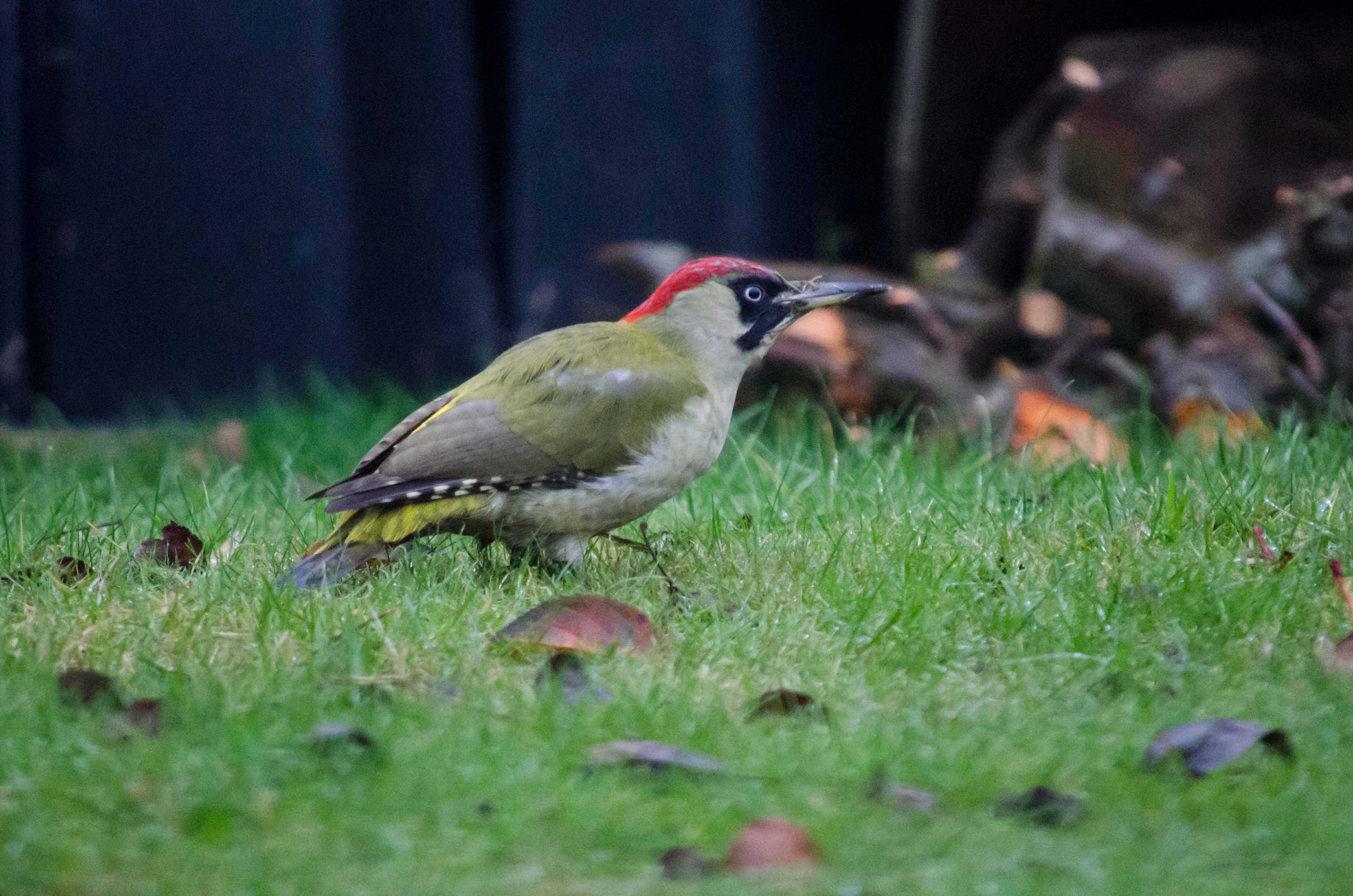 A Green Woodpecker making a first visit (that I know of) to a nearby garden