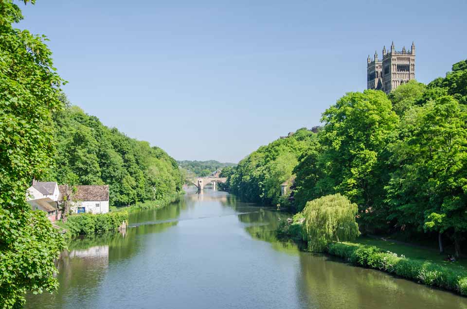 Durham City, dominted by Durham Castle and Durham Cathedral, is a World Heritage Site in County Durham.