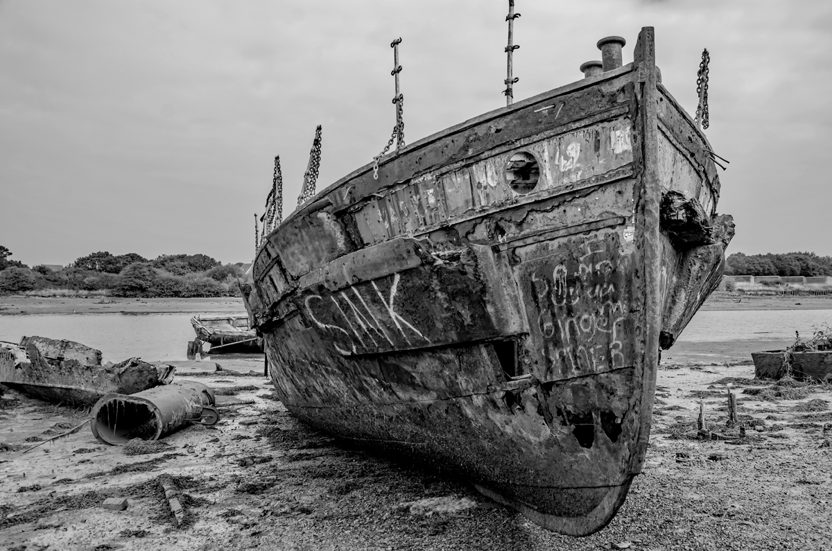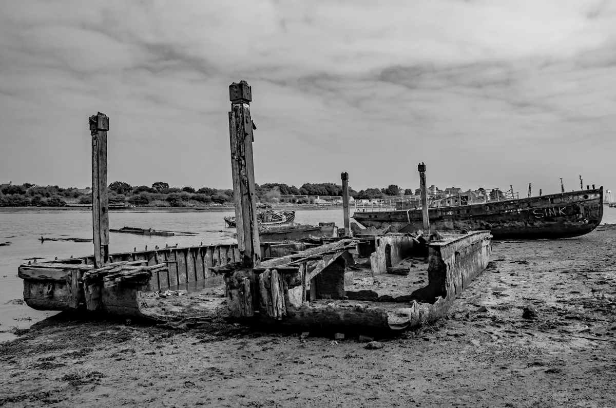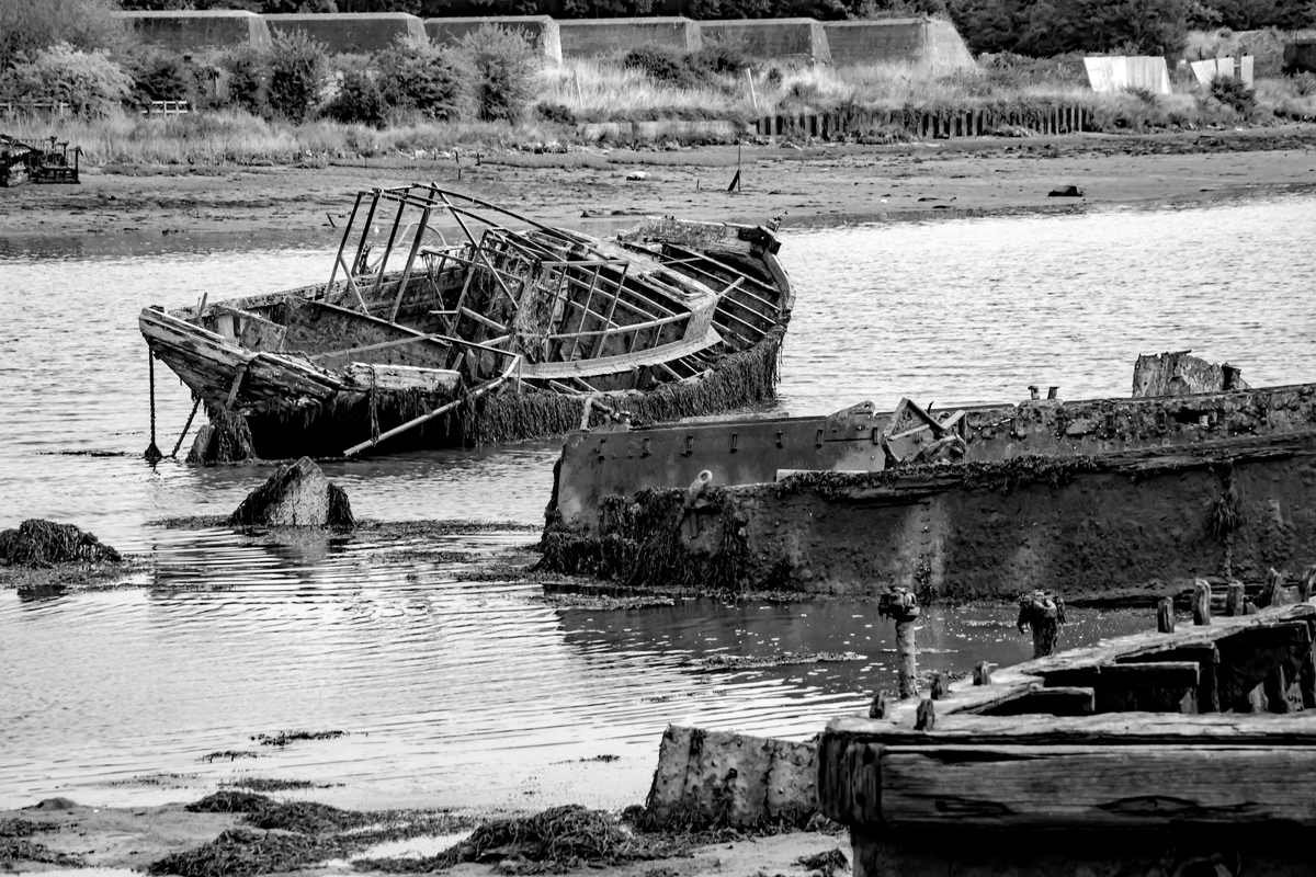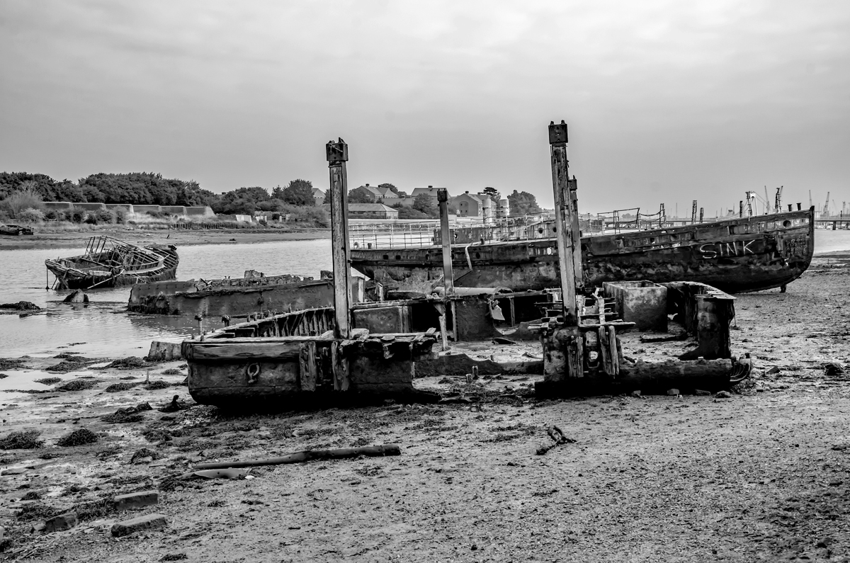 Forton Lake Gosport, the final resting place of once proud workhorses including a minesweeper, a trawler and the former Gosport Ferry Vadne