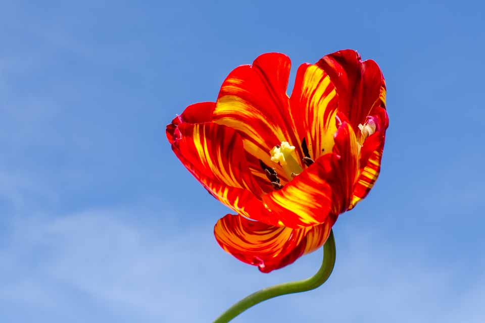 Colourful tulip taken against the almost blue sky and used as a ‘weather picture’ on the regional TV programme South Today