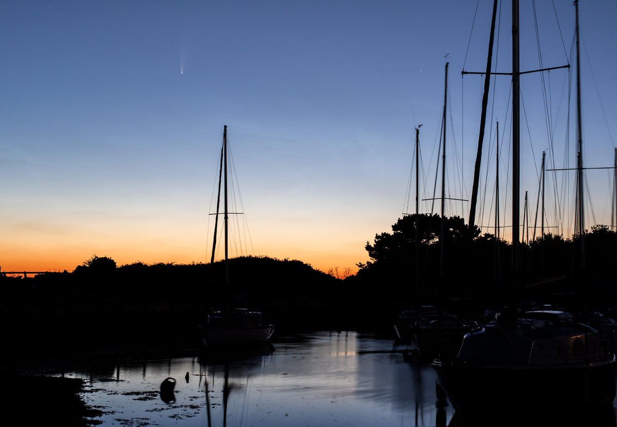 Pre dawn colours in the sky at Titchfield Haven. The comet Neowise is visible towards the top left