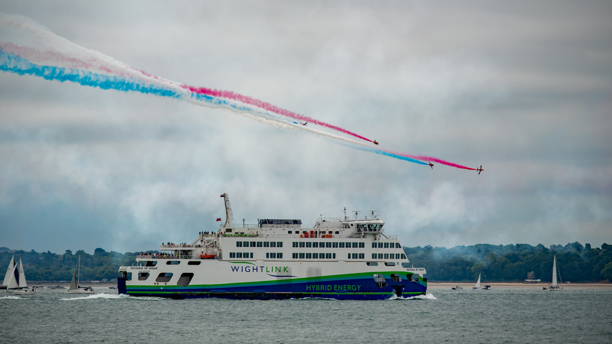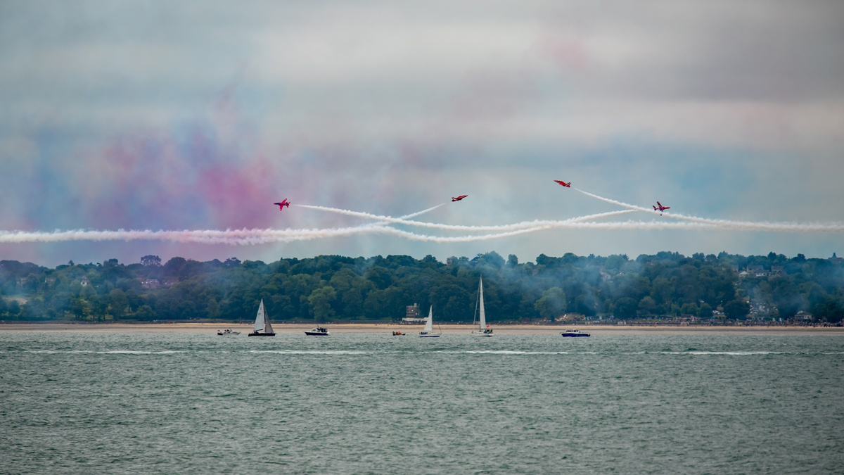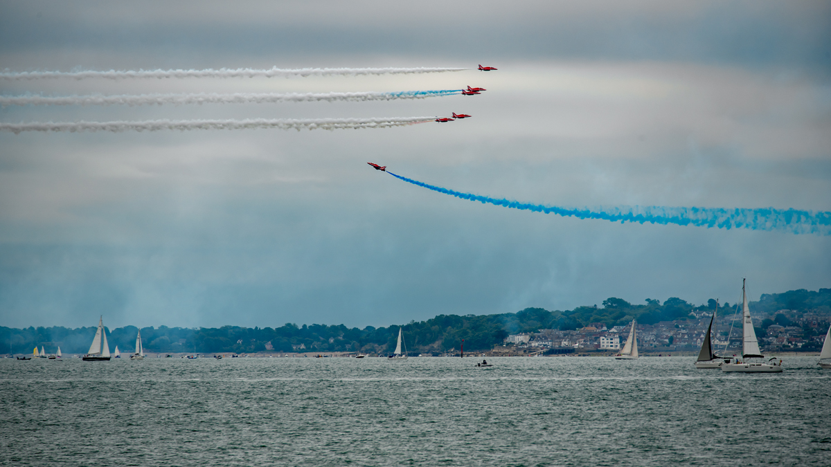 D Day 75 Daedalus. The Red Arrows fly past at Solent Airport Daedalus to mark the 75 anniversary of the D-Day landings by allied forces in Normandy 1944