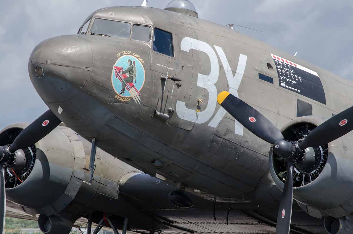 D Day 75 Daedalus. Douglas Dakota “Drag ‘em Oot” at Solent Airport Daedalus to mark the 75 anniversary of the D_Day landings by allied forces in Normandy 1944