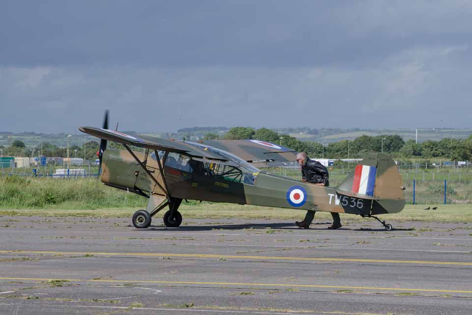 Auster TW536 being held in a straight line while taxing in the wind